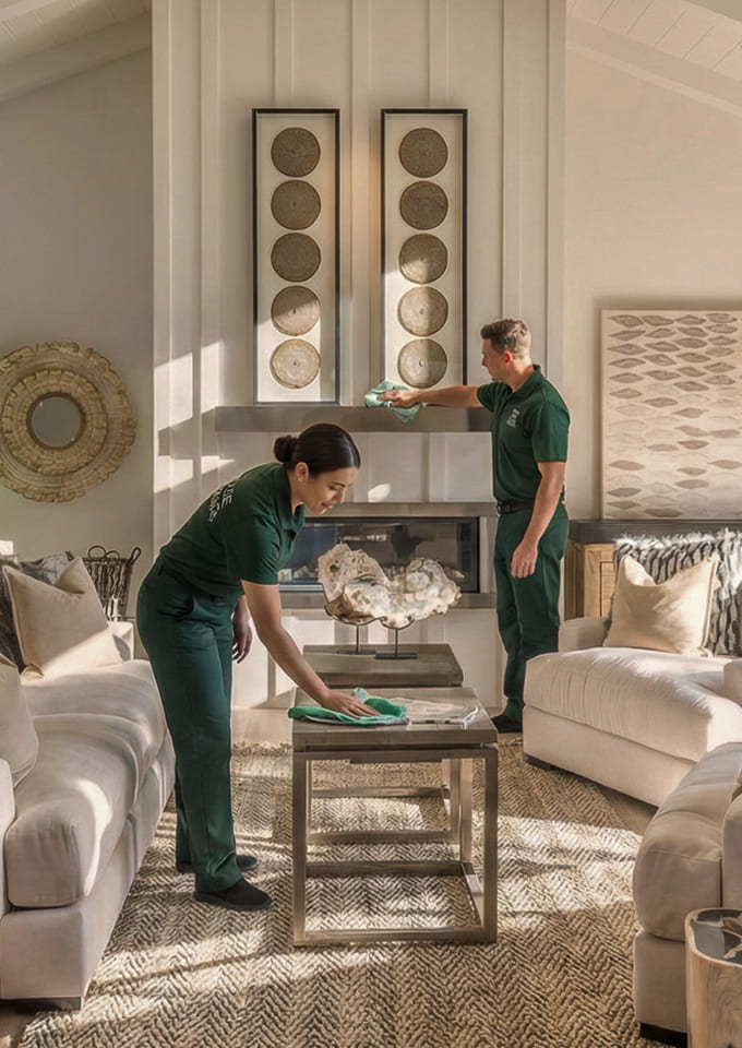 We clean kitchens, bathrooms, bedrooms, and living spaces with care and precision, then reset each room so it feels orderly, calm, and complete.